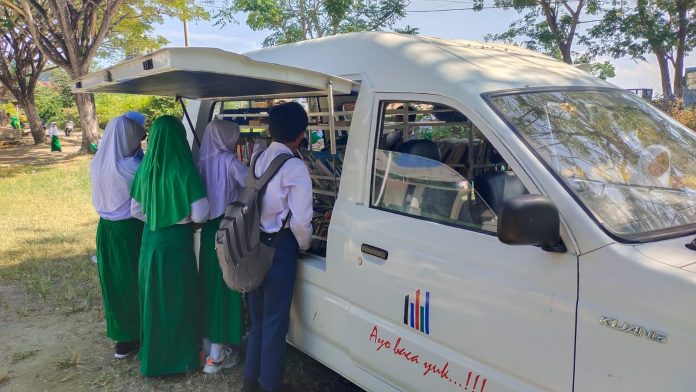 ” Saya sangat mengapresiasi dengan hadinya layanan perpustakaan keliling, bakan murid -murid kami disini sangat antusias pak, dengan hadirnya,”ujarannya.