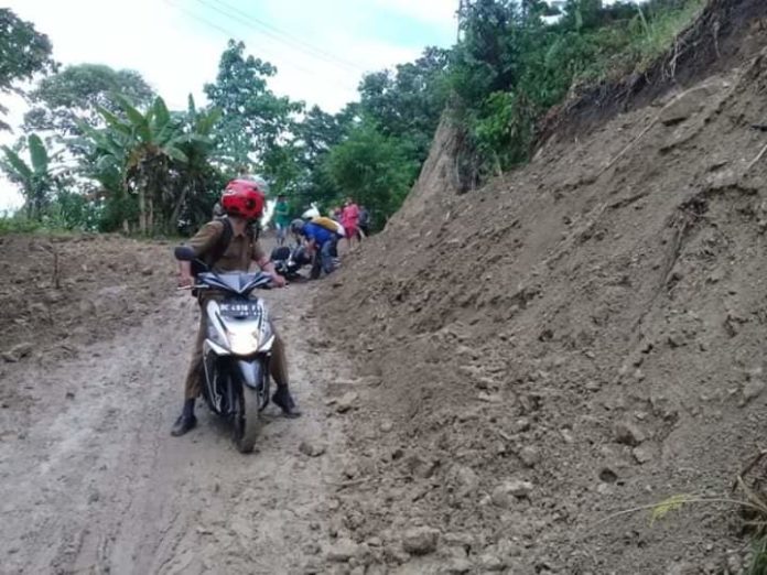 Kondisi Jalan Poros Sese Tambayako yang di penuhi lumpur akibat galian pekerjaan jalan belum selesai (Photo Hasri Masyarkat Sese )