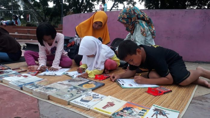 MAMUJU,MATLENSA.ID–Tiga komunitas literasi bahu-membahu untuk menyediakan literatur bagi anak-anak di Taman Lalu Lintas Mamuju,Senin (03/11).