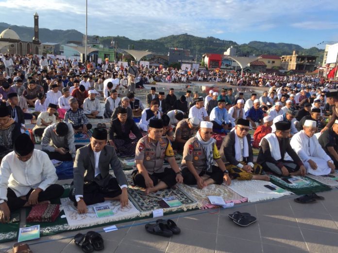 Di Sulawesi Barat, Kapolda Brigjen Pol Drs. Baharudin Djafar, M.Si juga tak ketinggalan meramaikan hari raya idul fitri ini dengan melaksanakan sholat ID di anjungan pantai manakarra bersama seluruh masyarakat muslim lainya.