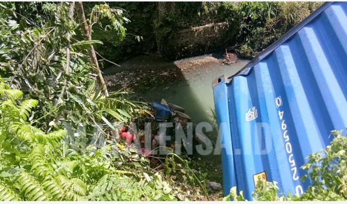 MAMUJU,MATALENSA.ID—-Salah satu mobil kontainer dari arah selatan mengalami kecelakaan tunggal sekitar pukul 12 siang tadi di jalan trans Sulawesi tepatnya jembana putih desa Botteng Utara Kecamatan Simboro Kabupaten Mamuju Sulawesi Barat