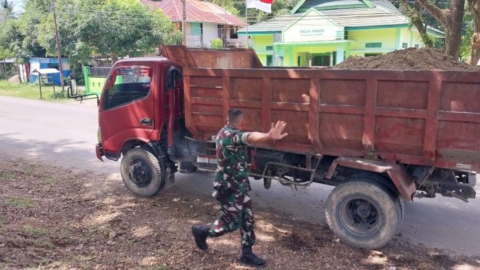 Mobil Truk Pengangkut Pasir Terbakar,  Anggota Pos Jaga Korem 142 Tatag Sigap Padamkan Api