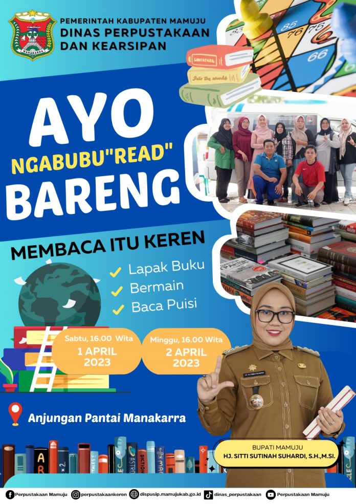 MAMUJU, MATALENSA.ID —- Dinas Perpustakaan dan Kearsipan Kabupaten Mamuju menghadirkan giat pekan literasi dengan tema Ngabubu”Read” yang akan dilaksanakan pada sabtu 1 April dan minggu 2 April 2023 di anjungan pantai Manakarra Mamuju.