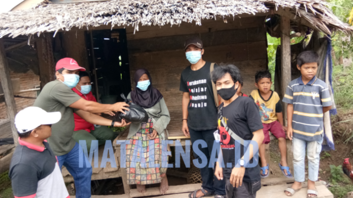 MAMUJU,MATALENSA.ID-Organisasi Pemuda Pemudi Pelajar Sese (P3S) Mamuju,dan KPMM Kota Pare Pare,bersama Komunitas Motor SCOM Mamuju,bekerjasama dengan,Media Rakyatsulsel dan Media Online Matalensa.id,salurkan paket sembako sebanyak 100 paket ,masker 1000,dan Antiseftik kepada warga dibebapa titik, yakni Pamombong,Simbuang 2,Sese Selatan,Alla-Alla dan Sese, Kecamatan Simboro,Mamuju Sulbar.