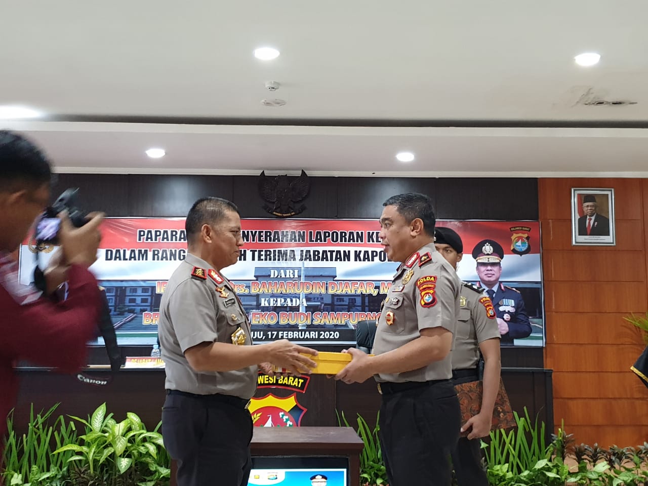 MAMUJU,MATALENSA.ID— Paparan dan penyerahan laporan kesatuan menjadi salah satu rangkaian sertijab Kapolda Sulbar dari pejabat lama Irjen Pol Drs. Baharudin Djafar, M.Si kepada pejabat baru Brigjen Pol Dr. Eko Budi Sampurno.
