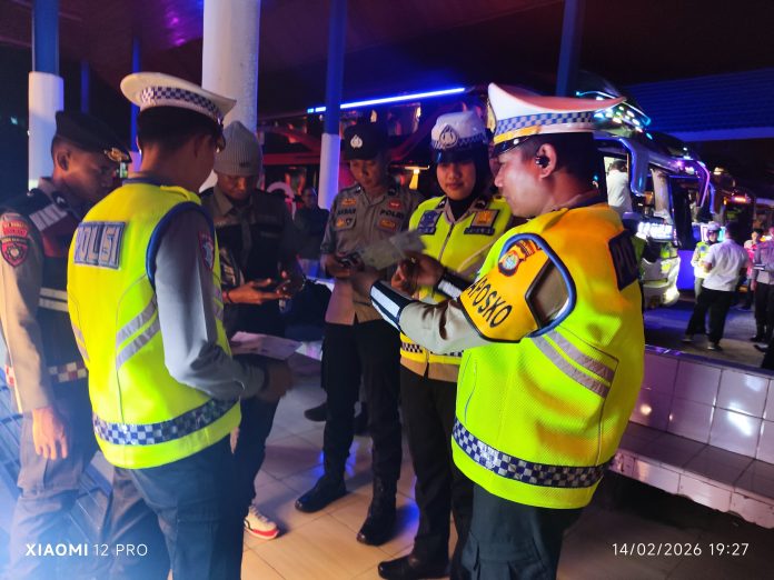 MAMUJU, – Guna menjamin keamanan dan kelancaran perjalanan masyarakat selama masa libur jelang Ramadhan, Polda Sulbar melalui kegiatan operasi keselamatan Marano menggelar operasi keselamatan dengan melakukan pengecekan kelayakan kendaraan bus antar kota dan antar provinsi di Terminal Simbuang, Sabtu (14/2/26).