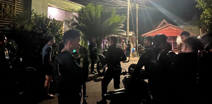 Piket patroli motor (Patmor) segera bergerak menuju lokasi kejadian keributan sekelompok pemuda mabuk yang melempari rumah warga di Jalan Mustafa Daeng Sirua, Kelurahan Tambayako.