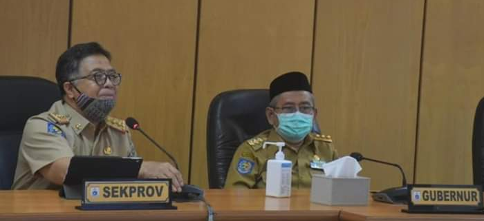 Rapat tersebut, dipimpin oleh Gubernur Sulbar, Ali Baal Masdar, yang juga selaku Ketua GTPP Covid-19 Sulbar, didampingi Sekprov Sulbar, Muhammad Idris, Asisten Bidang Perekonomian dan Pembangunan, Muhammad Hamzah dan Staf Ahli Gubernur Sulbar, Ibrahim.