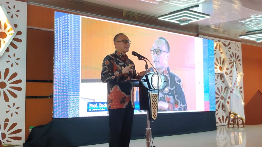 PJ Gubernur Sulbar Prof. Zudan Arif Fakrulloh saat menjadi keynote speechnya menyampaikan terima kasih dan apresiasi atas kehadiran Dirjen Bina Keuangan dan berbagai pihak, termasuk kepala daerah enam kabupaten se -Sulbar.