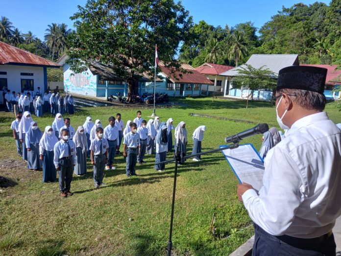 Kepala Sekolah SMKN 1 Tapalang Barat Sjahrir Tamsi, menyampaikan beberapa pesan penting kepada pengurus OSIS baru di sekolahnya diantaranya