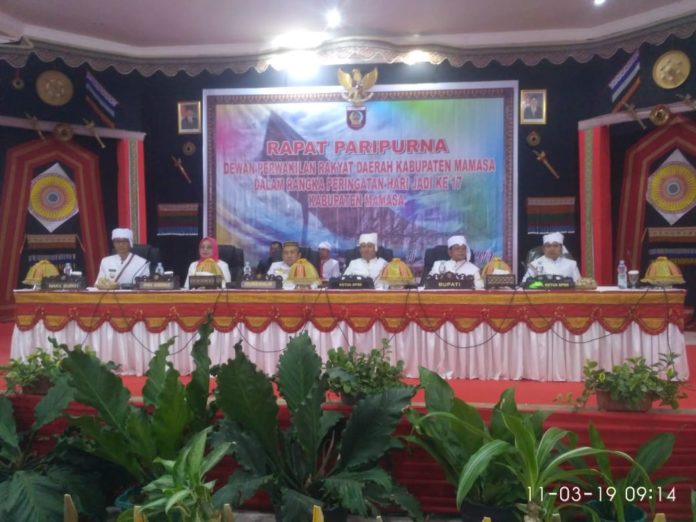 Rapat paripurna dipimpin langsung oleh Wakil Ketua II DPRD Kabupaten Mamasa Orsan Solaeman, dihadiri Bupati dan Wakil Bupati Mamasa, Forkopimda Mamasa, hadir pula Gubernur Sulawesi Barat dan seluruh pejabat eslon II, III dan IV lingkup pemerintahan kabupaten Mamasa.
