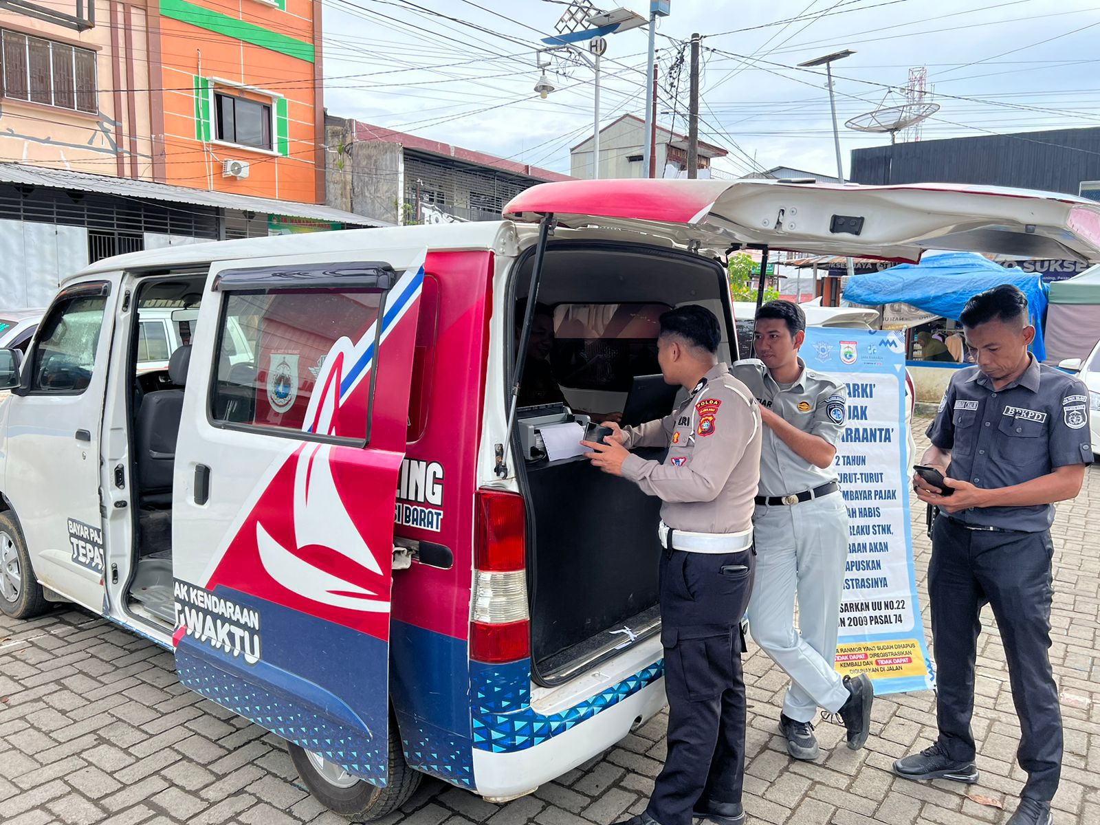 Terlihat di salah satu pusat keramaian di Mamuju Ipda Afanharapansyah bersama personel Ditlantas dan staf Samsat standby menunggu masyarakat yang hendak membayarkan pajak kendaraannya. (*)