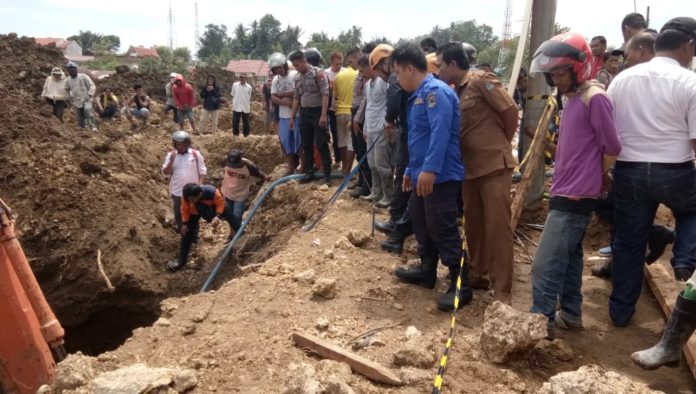 “Saya ajak korban naik keatas,dengan menggunakan tangga tiba-tiba tanahnya longsor dan menimbun korban. Beruntung saya dapat menghindar dan selamat kemudian teriak meminta bantuan,” ujarnya