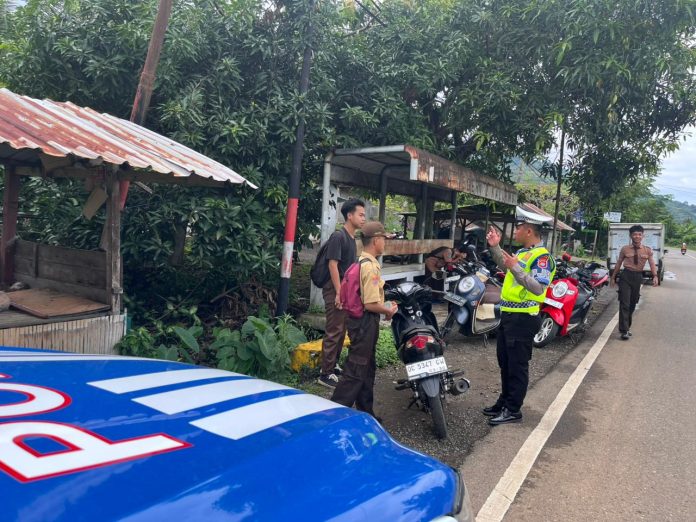 Selain itu, petugas juga memberikan teguran edukatif kepada beberapa pelajar yang menggunakan kendaraan roda dua namun belum mematuhi peraturan keselamatan dengan tidak menggunakan helm.