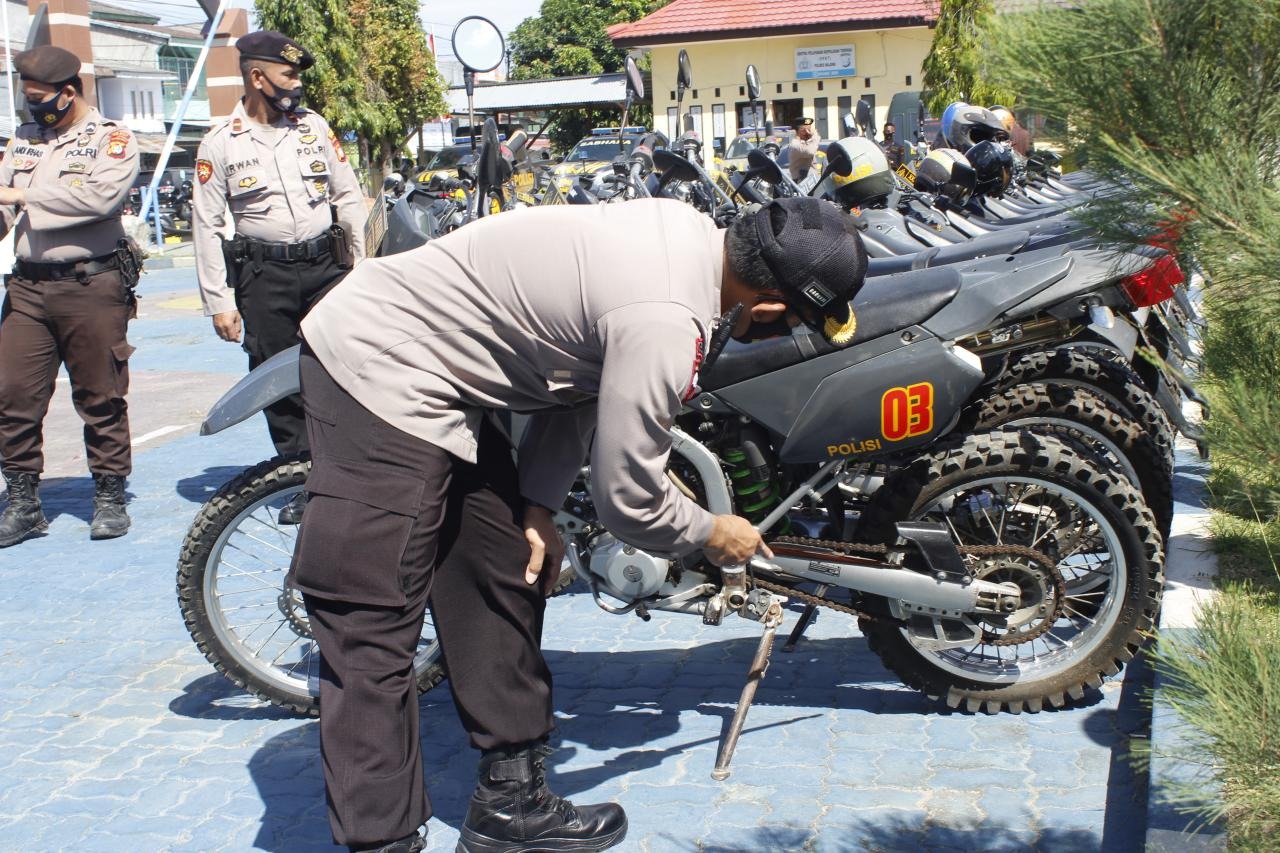 MAJENE,MATALENSA.ID– Pemilihan kepada daerah (pilkada) tingkat kabupaten majene makin dekat, guna menunjang kelancaran pelaksanaan tugas dilapangan, Kapolres Majene AKBP Irawan Banuaji, SIK, M.Si melakukan pengecekan kendaraan dinas roda dua (R2) milik Sat. Sabhara Polres Majene setelah pelaksanaan apel pagi di Mako Polres Majene,Rabu (26/8)