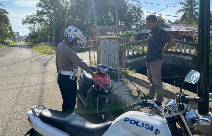 Dalam kegiatan ini kasat lantas Polresta Mamuju juga mengedukasi pengendara yang telah ditertibkan