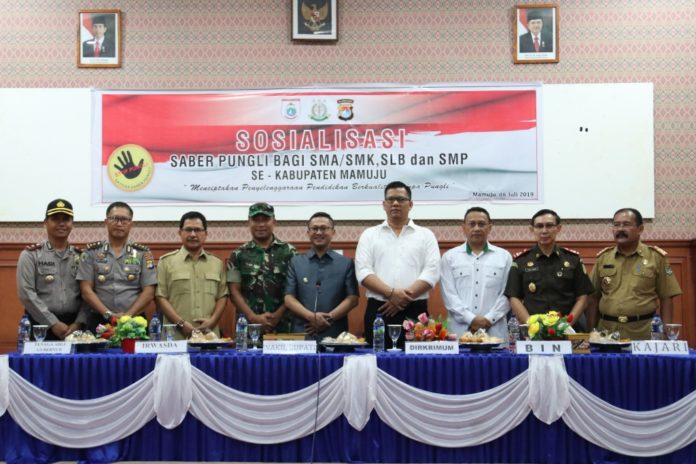 Pada kegiatan Sosialisasi Sapu Bersih Pungutan Liar (Saber Pungli) bagi SMA/SMK, SLB dan SMP se Kabupaten Mamuju, Senin (8/7) di ruang pola Kantor Bupati Mamuj.