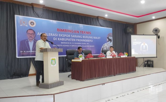Itu disampaikan Dr. H. Suhardi Duka MM anggota komisi IV DPR RI, saat membuka acara Bimtek akselerasi ekspor sarang burung walet di Pasangkayu.
