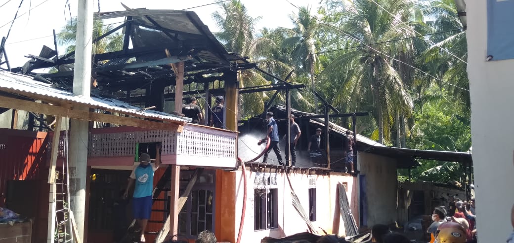 Amukan sijago merah baru bisa dipadamkan setelah dua unit mobil pemadam kebakaran tiba di lokasi dengan bantuan pengamanan dari pihak Kepolisian Resort Majene.