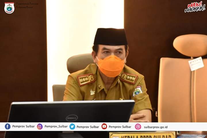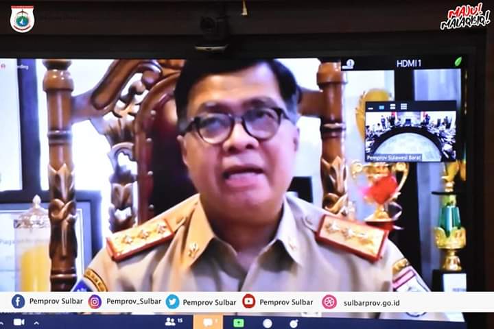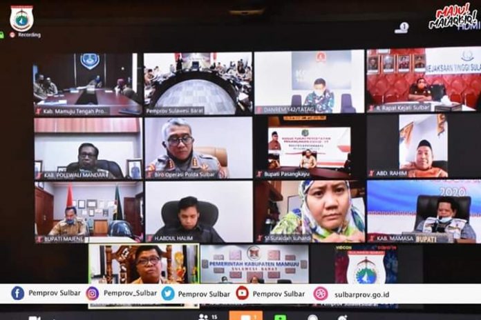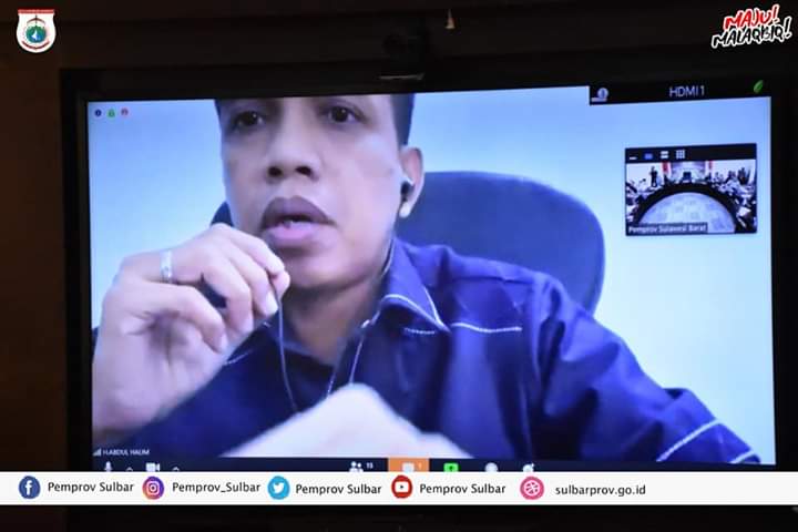 MAMUJU,MATALENSA.ID—Sekprov Sulbar, Muhammad Idris, Membuka rapat Koordinasi Terbatas dengan Ketua DPRD Sulbar, Siti Suraidah Suhardi, Wakil Ketua II DPRD Sulbar, Abdul Halim, Wakil Ketua III DPRD Sulbar, Abdul Rahim, Danrem 142/Tatag, Kolonel Firman Dahlan, Kejati Sulbar, Darmawel Aswar, Bupati Se-sulbar, dan Kepala OPD Terkait melalui video confernce di Ruang Oval lantai III Kantor Gubernur Sulbar, Senin 4 Mei 2020.