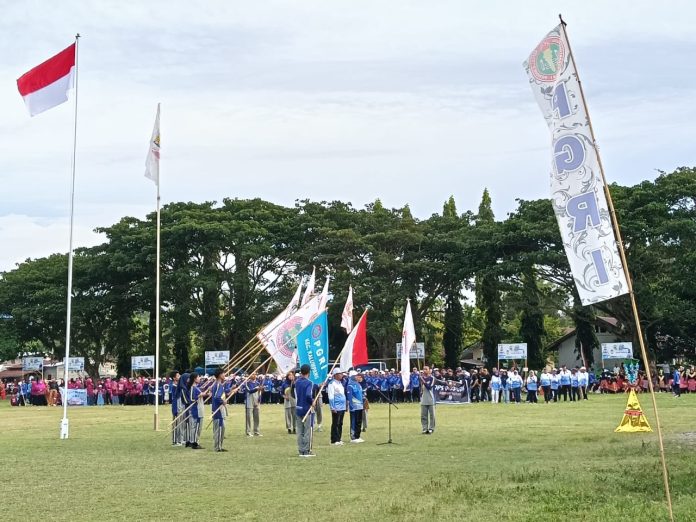 MAMUJU, – Ribuan peserta dari berbagai kecamatan di Mamuju memadati lapangan Toabo, Kecamatan Papalang, Sabtu (22/11/2025). Para peserta itu adalah para Kontingen memperingati hari Poseni PGRI tahun 2025.