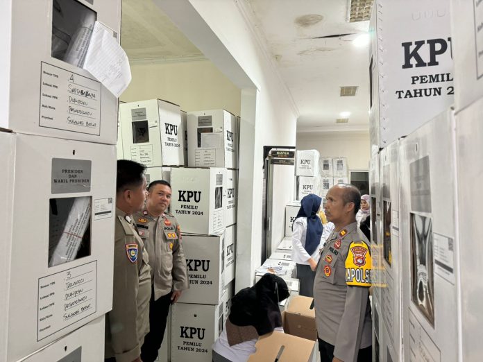 PASANGKAYU, MATALENSA.ID — Subsatgas Preventif Polsek Pasangkayu mengintensifkan Patroli dengan menyambangi Kantor KPU pantau Logistik Pemilu di pimpin Kapolsek Pasangkayu IPTU Mustamir S.H sebagai Kasubsatgas Preventif. Senin (5/2/24).