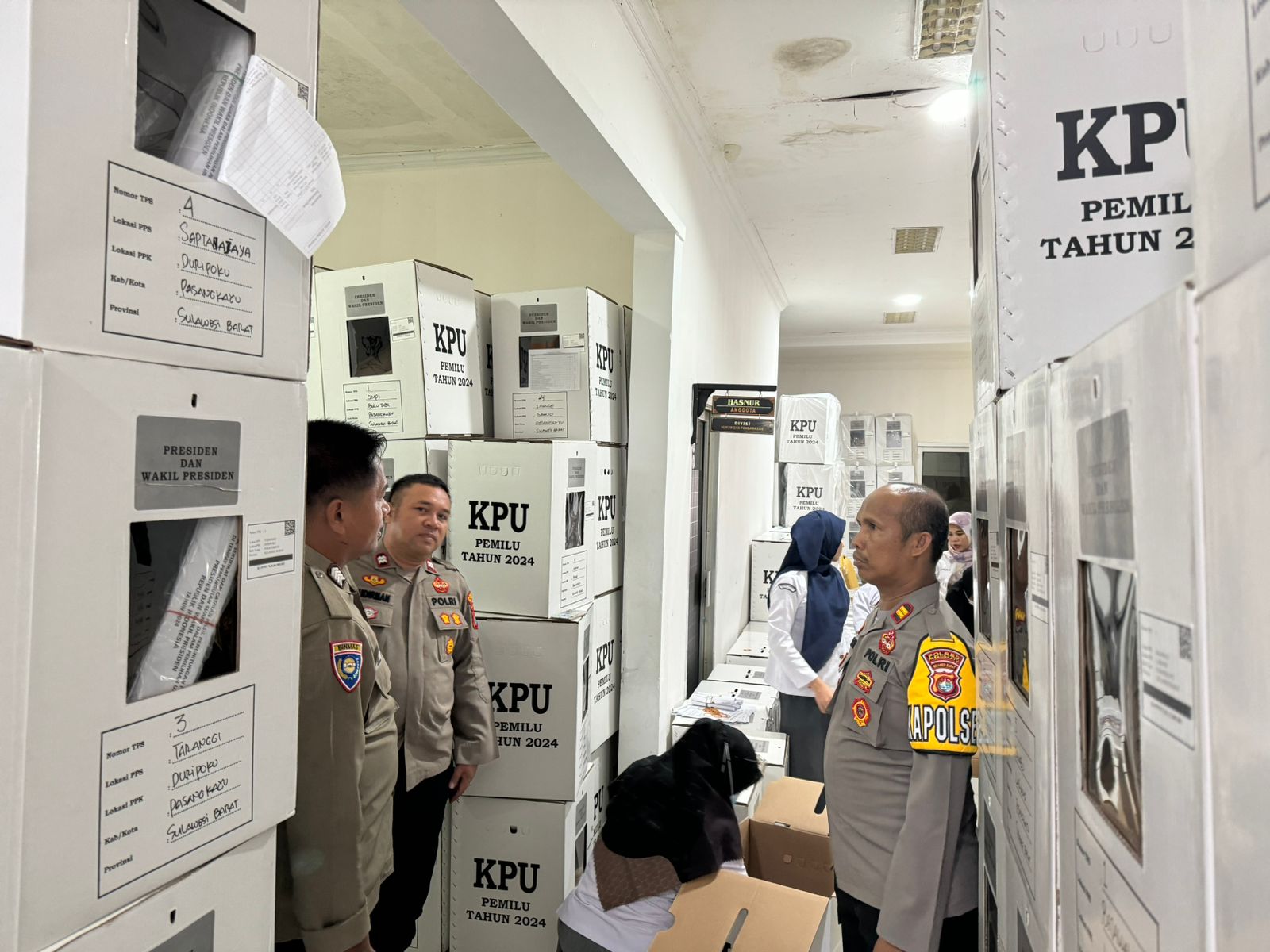 Patroli dilakukan untuk memantau logistik pemilu di Kantor KPU Kabupaten Pasangkayu jalan Ir. Soekarno.