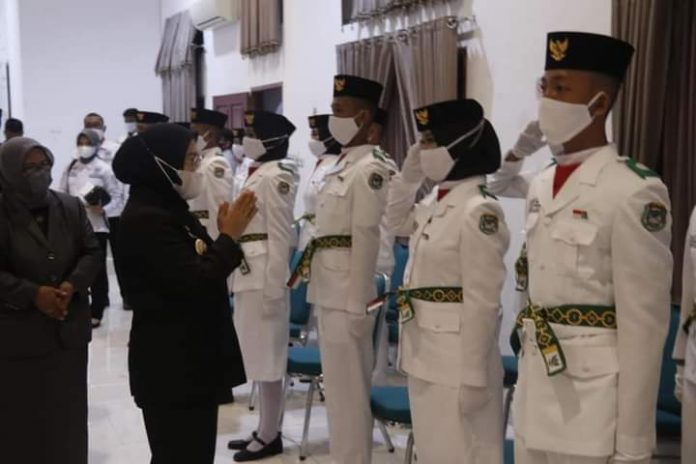 MAMUJU,MATALENSA.ID–Bupati Mamuju, Hj. Sutinah Suhardi secara resmi mengukuhkan Pasukan Pengibar Bendera Pusaka (Paskibraka) tingkat Kabupaten Mamuju di Aula Wisma Malaqbi,Minggu (15/8/21) dini malam