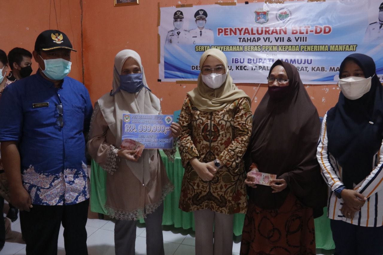 MAMUJU,MATALENSA.ID--Menjadi kunjungan perdananya pasca dilantik menjadi Bupati Mamuju di Desa Pasa’bu, Sutinah Suhardi menyerahkan Bantuan Langsung Tunai (BLT) Dana Desa periode bulan Juni sampai Agustus dan bantuan beras PPKM kepada masyarakat di Aula Kantor Desa Pasa’bu,Kamis, ( 19/8 )