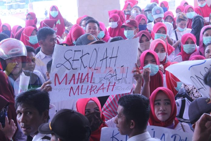 MAMUJU,MATALENSA.ID—-Ratusan Perawat yang tergabung dalam Gerakan Perawat Honor Indonesia (GNPHI) Kabupaten Mamuju,gelar aksi unjuk rasa di halaman kantor Bupati Mamuju,Kamis (06/12).