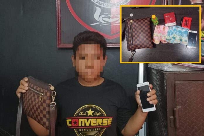 Dalam penangkapan tersebut, 1 orang pelaku BerInisial “RA” (17) yang berprofesi sebagai buruh bangunan dan barang bukti berupa 1 unit Handphone merk Oppo A37 serta dompet kecil berisi uang tunai senilai 550.000,- berhasil di amankan.