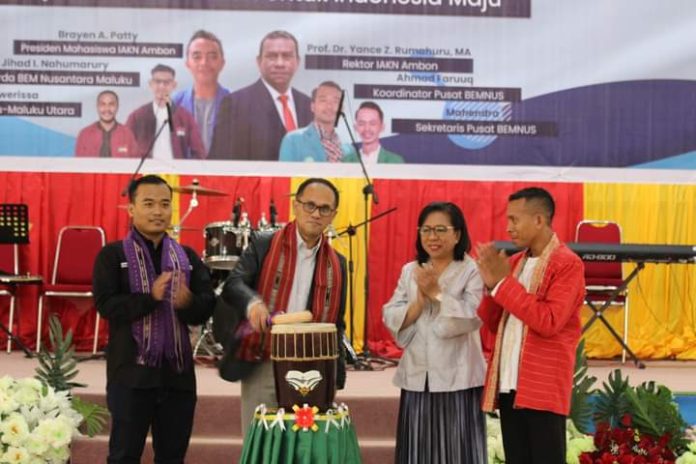 AMBON, MATALENSA.ID — Pembukaan kegiatan Temu Badan Eksekutif Mahasiswa (BEM) dan Ekspedisi Kebhinekaan Nusantara ke-XIV dengan Tema “Merajut Asa Kebhinekaan Untuk Indonesia Maju” di Maluku, Kamis, (9/11)