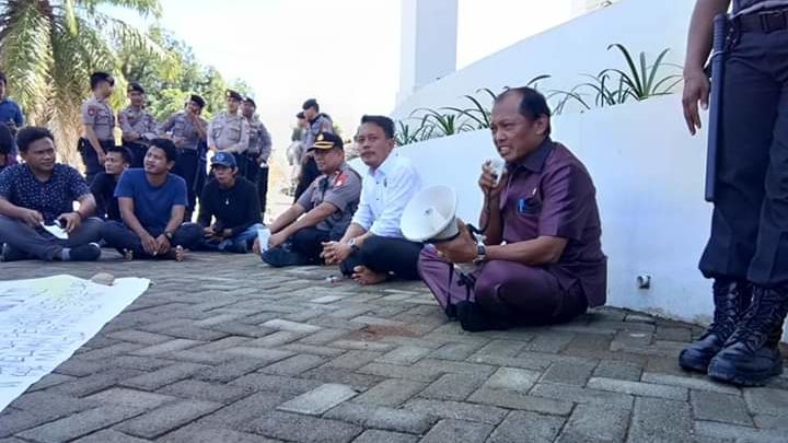Para demonstran tersebut ditemui oleh wakil ketua DPRD Mamuju Andi Dodi dan ketua komisi I H.Sugianto, mereka diajak berdialog dengan cara duduk bersila dipelataran gedung DPRD Mamuju.