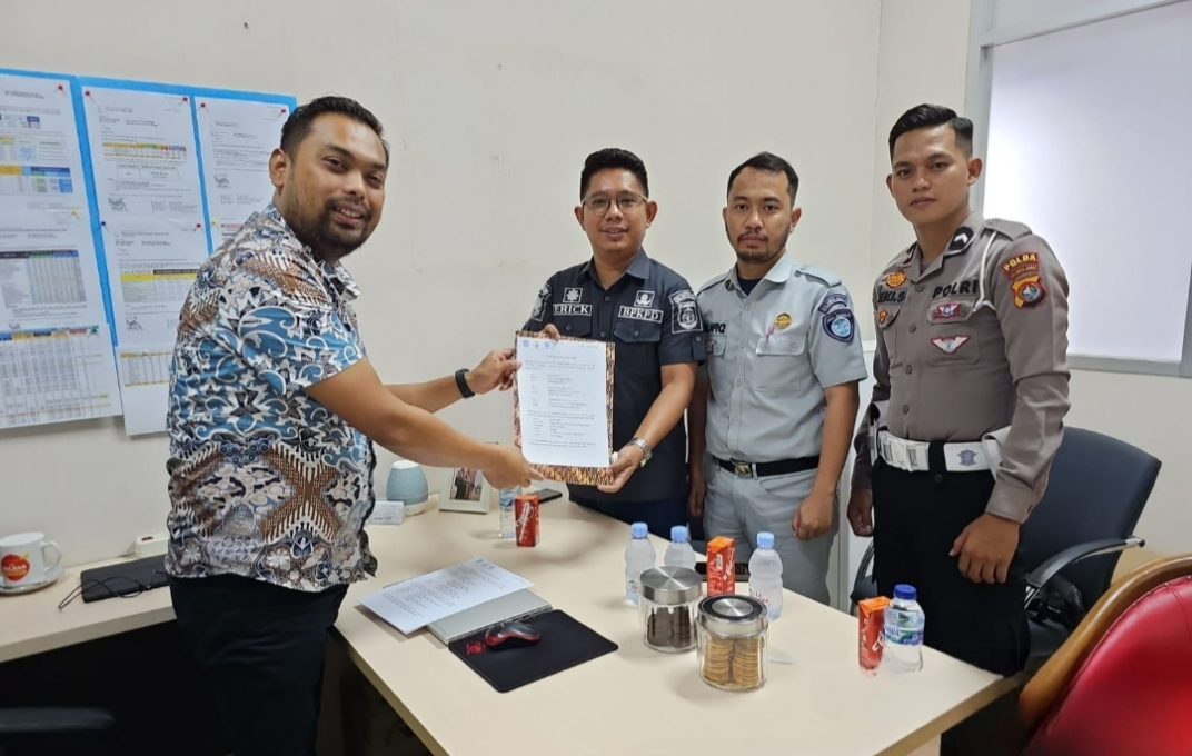 Muhammad Noor Taufiq Penanggung Jawab Samsat Mamuju, bersama Kepala Seksi Tata Usaha Samsat Mamuju, Erick Friths Grenius, S.STP., M.Si serta Bripda Jeki Sima selaku Staf Pelaksana Regident Polda Sulawesi Barat (Sulbar) melaksanakan penandatanganan perjanjian kerja sama mengenai pembukaan Layanan Gerai Samsat dengan Idham Haryadi selaku Branch Head Kalla Toyota Mamuju, pada Hari Kamis, (26/10).