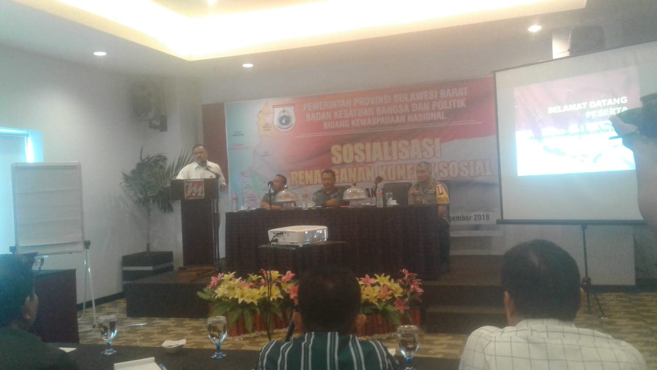 MAMUJU,MATALENSA.ID–Badan Kesatuan Bangsa dan Politik Provinsi Sulawesi Barat (Sulbar) melalui bidang Kewaspadaan Nasinal melakukan sosialisasi penanganan konflik sosial ,Jumat (7/12)