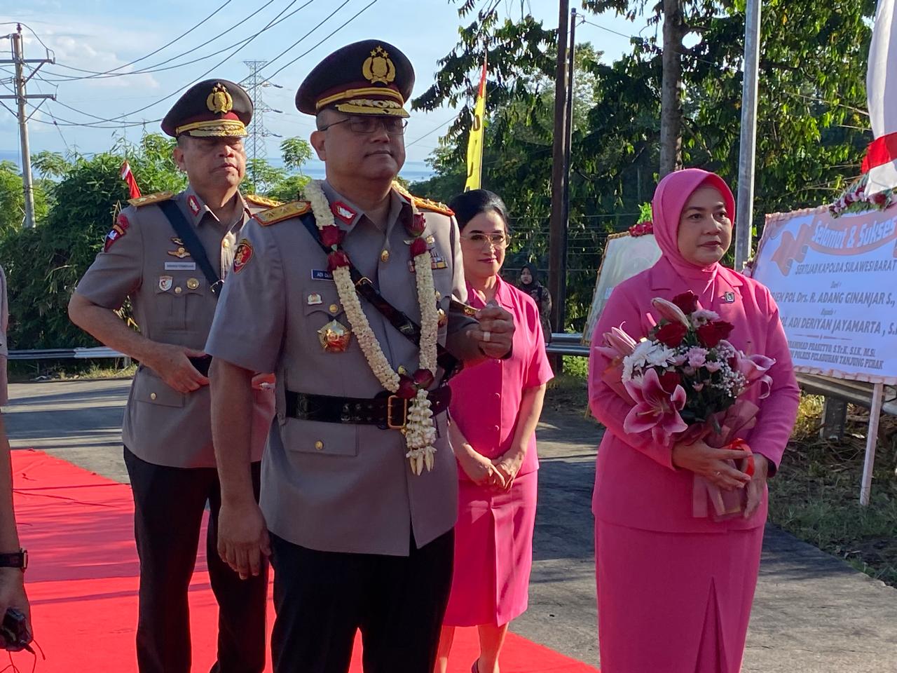 Setibanya di Mapolda Sulbar, Irjen Pol Adi Deriyan Jayamarta didampingi Ketua Bhayangkari disambut dengan pengalungan bunga oleh Purnawirawan Irjen Pol Adang Ginanjar beserta istri, diikuti jajaran pejabat utama dan Bhayangkari lainnya. Karangan bunga ucapan selamat juga berderet di sepanjang pintu masuk Mapolda yang menambah semarak suasana.