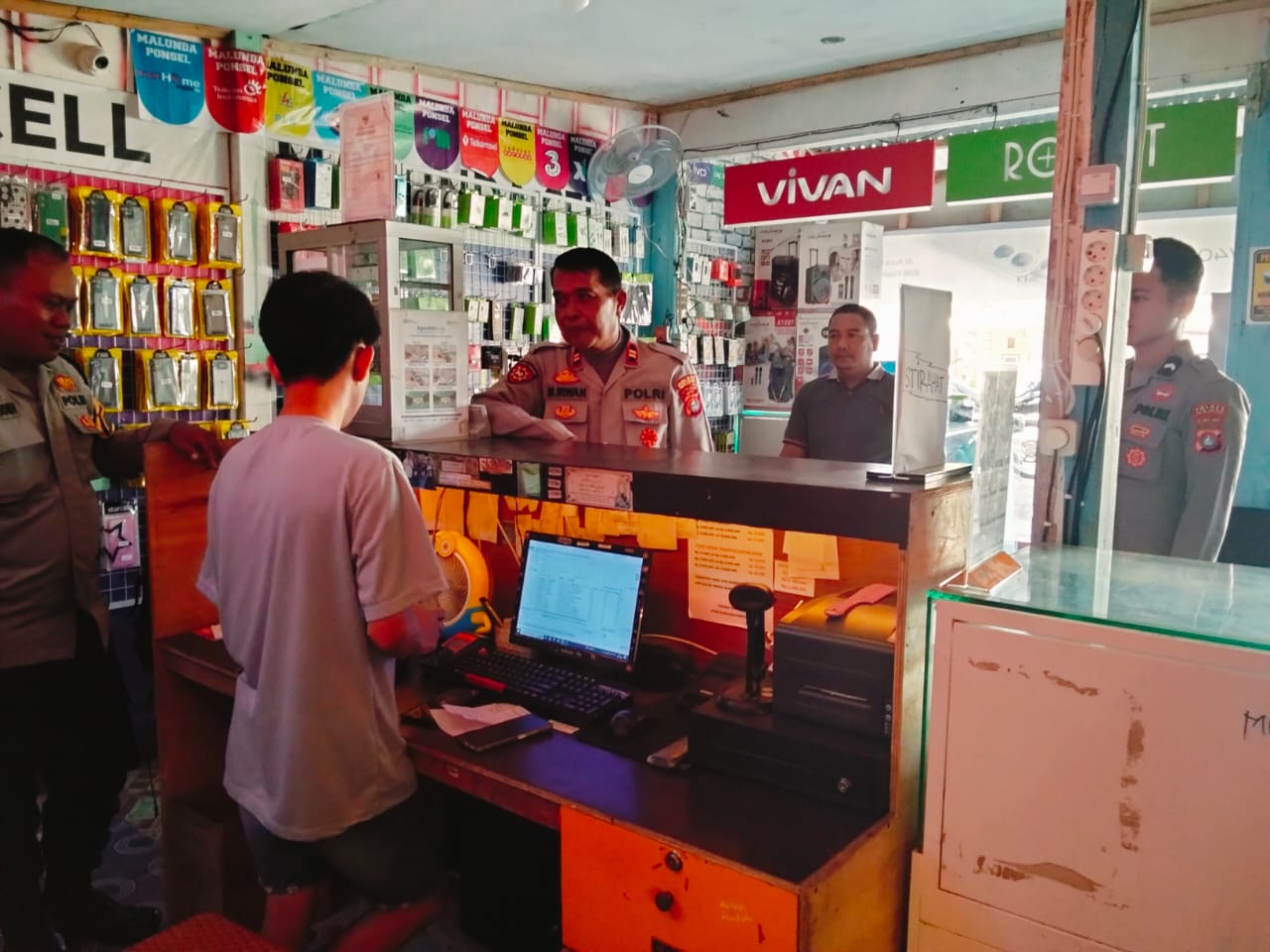 Tidak berhenti di satu lokasi, terduga pelaku melanjutkan aksinya ke sebuah counter handphone bernama Malunda Ponsel di Lingkungan Kalorang.