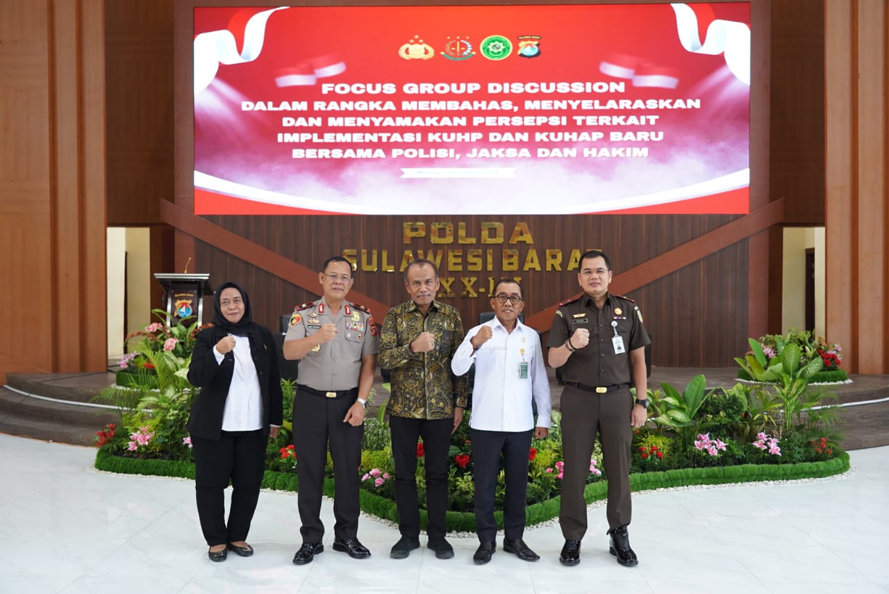 MAMUJU, MATALENSA.ID – Wakapolda Sulbar, Brigjen Pol Hari Santoso, secara resmi membuka kegiatan Focus Group Discussion (FGD) dalam rangka membahas, menyelaraskan dan menyamakan persepsi implementasi KUHP dan KUHAP baru bersama Polisi, Jaksa dan Hakim, Senin (26/1/26) di Aula Marannu Polda Sulbar.