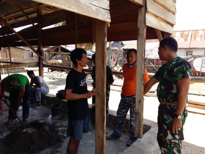 Dilokasi kegiatan Karya Bhakti TNI AL di Dusun Babana Pantai Desa Bambu Kab. Mamuju nampak masyarakat Antusias Bahu membahu bersama anggota Lanal Mamuju melakukan bedah rumah warga kurang mampu di Dusun Babana Pantai, sebagai Desa yang terpilih sasaran Karya Bhakti TNI AL Tahun 2019 sekaligus Desa binaan Lanal Mamuju.