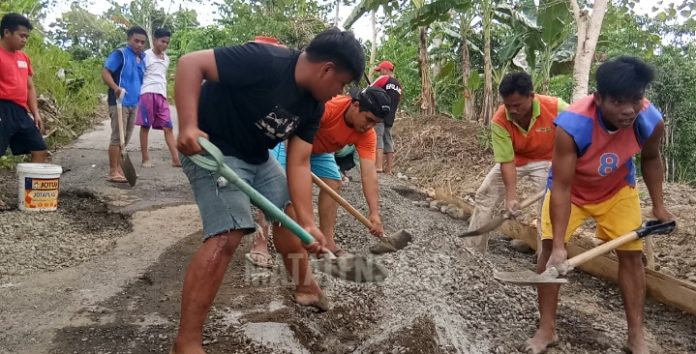 Warga Pamombong dan Simbuang II Gotong Royong Perbaiki Jalan Poros yang Berlubang.